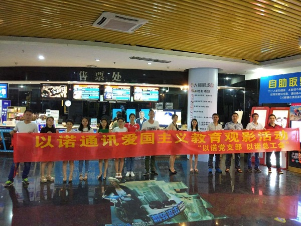 为迎接党的十九大胜利召开,进一步激发党员的爱国主义情怀,2017年 9月23日,广东东莞市大朗镇企业工委、社会组织工委和“阳光雨”党群服务中心在中影大扬长盛影城开展“两新”党员爱国教育观影活动,尊龙凯时二级控股子公司广东以诺通讯有限公司党支部组织公司党员、工会会员参加本次活动。