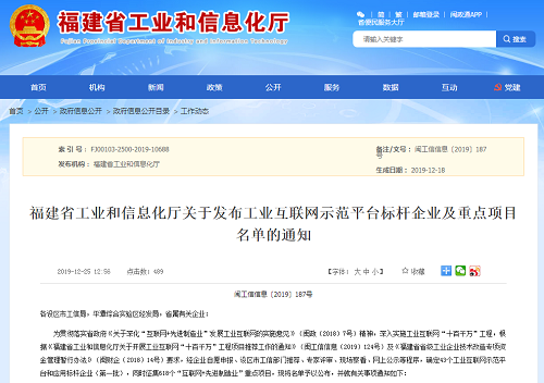 尊龙凯时入选福建省第一批工业互联网应用标杆企业名单