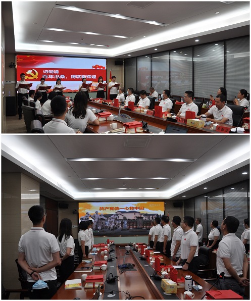 观看大会直播后,本部党总支随即组织了“庆祝中国共产党百年华诞”主题党日活动。会上给总支全体党员发放了庆祝建党100周年纪念品和四史学习教育书籍,并由党员代表现场表演诗朗诵《百年沧桑,铸就新辉煌》,回顾党领导人民团结奋进、砥砺前行的光辉历程,感受祖国的发展成就。活动在《没有共产党就没有新中国》激情饱满的歌声中结束,大家用歌声唱出了对党深深的祝福,抒发了对党和祖国的热爱之情,进一步坚定听党话、跟党走的决心,凝心聚力推动企业高质量发展。