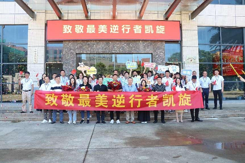 为欢迎公司海外销售人员凯旋,8月16日,以“致敬最美逆行者”为主题,公司成员企业迈锐光电举行欢迎仪式,慰问感谢从美国归来的公司副总经理曾光明带领的海外销售团队。